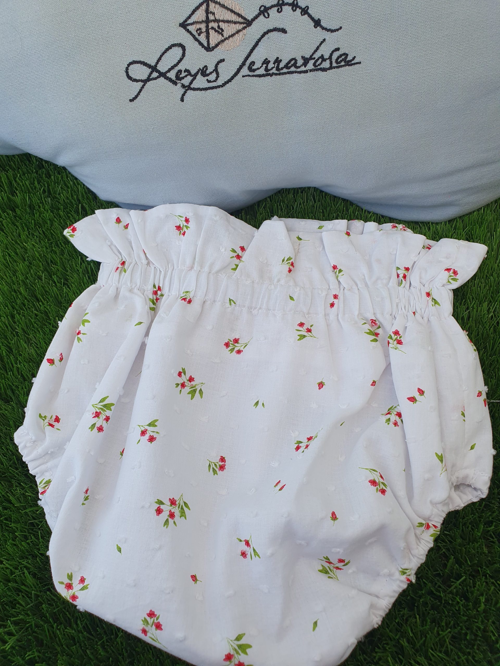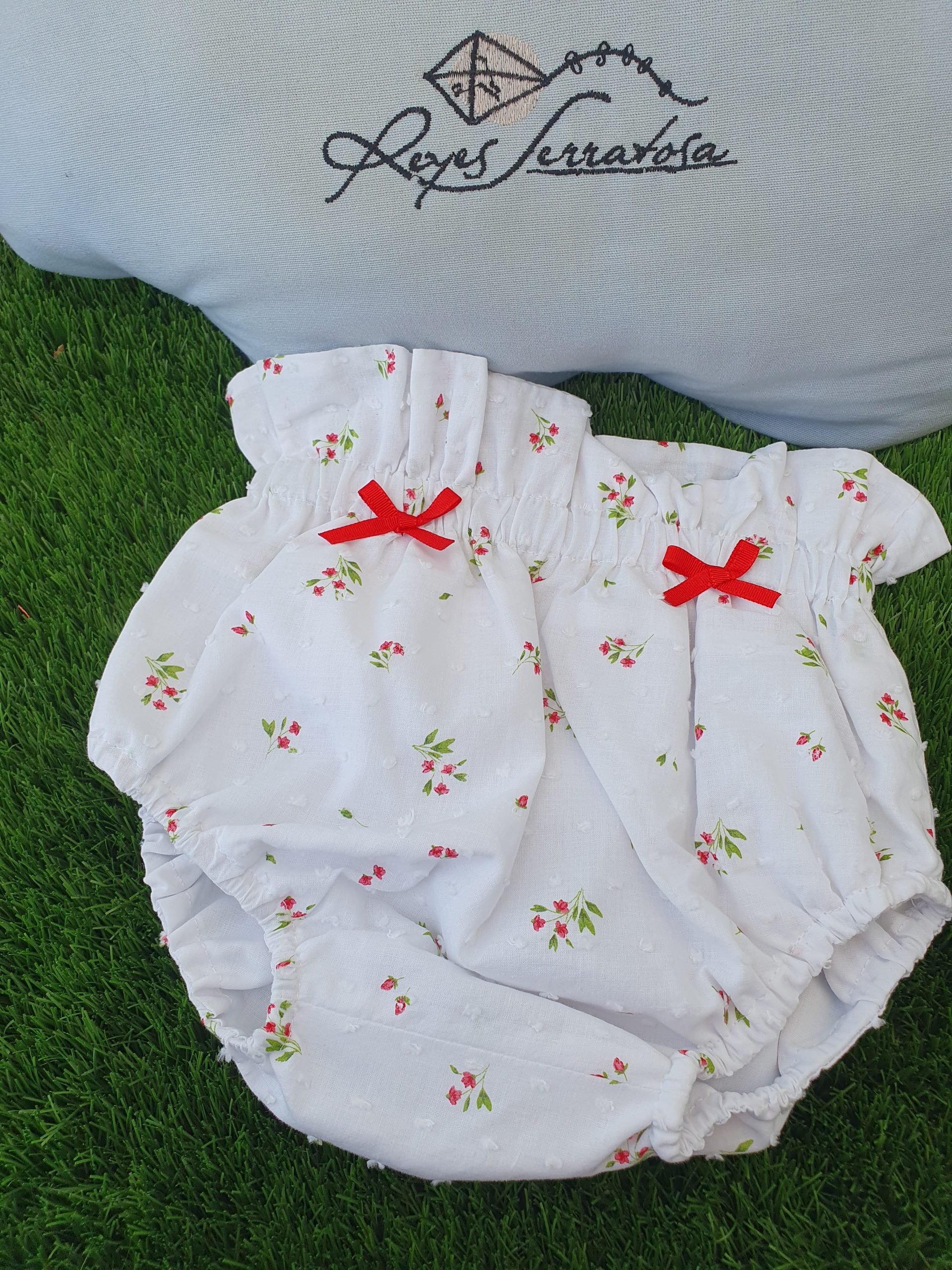 Cubrepañal flores rojas y plumeti
