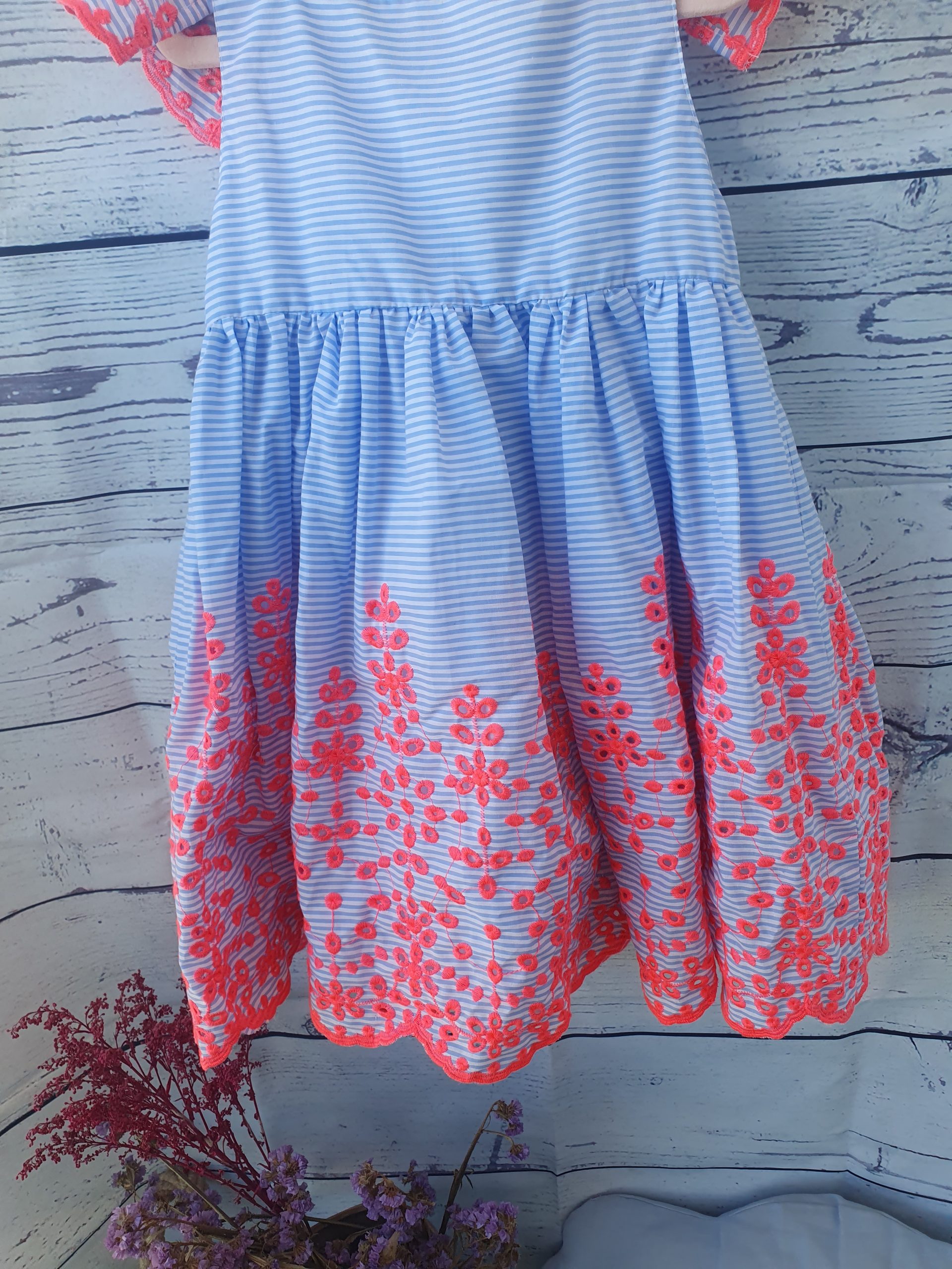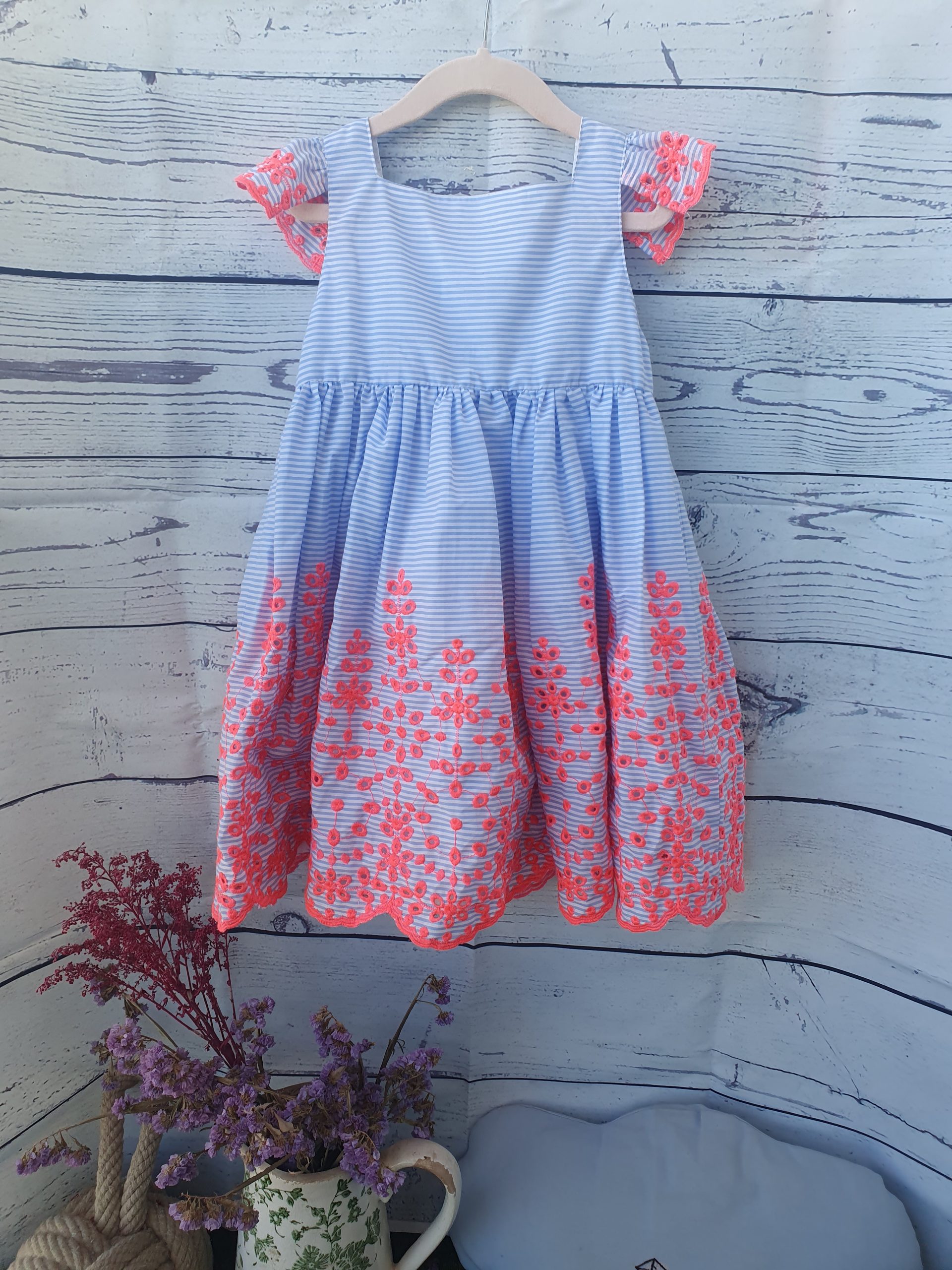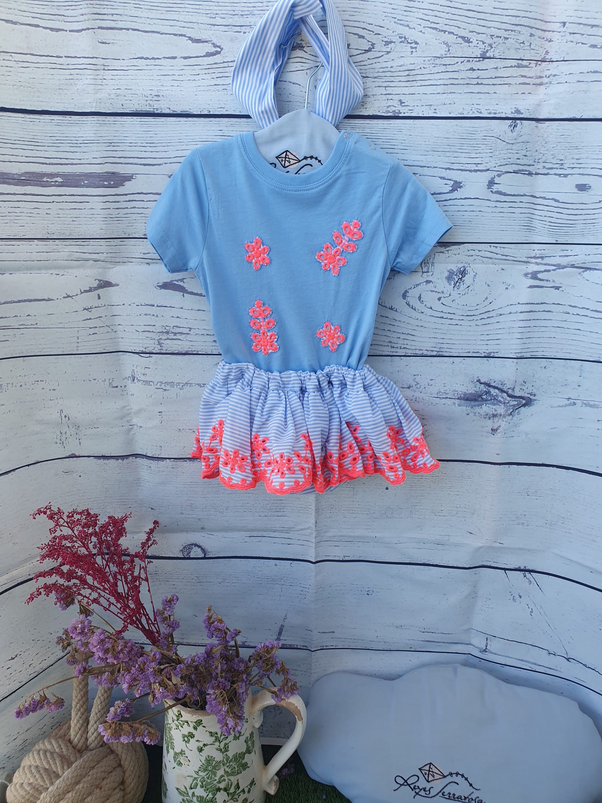 Vestido rayas con flores flúor