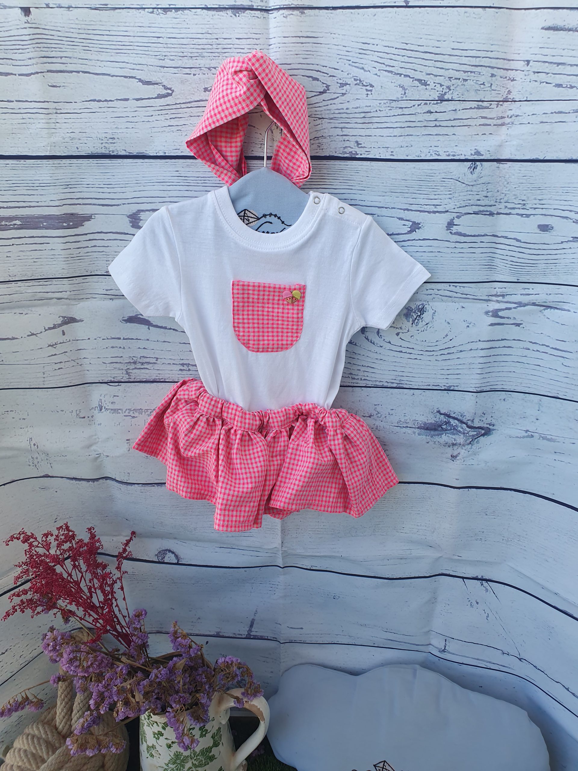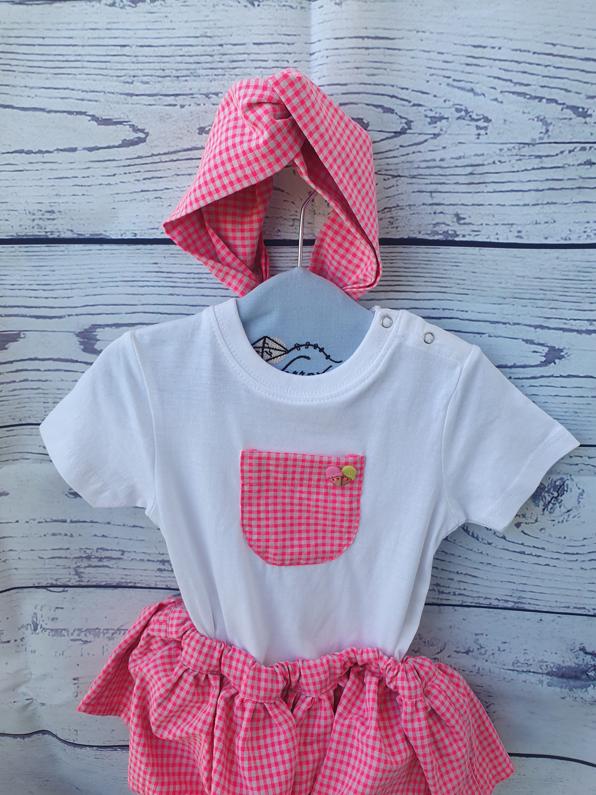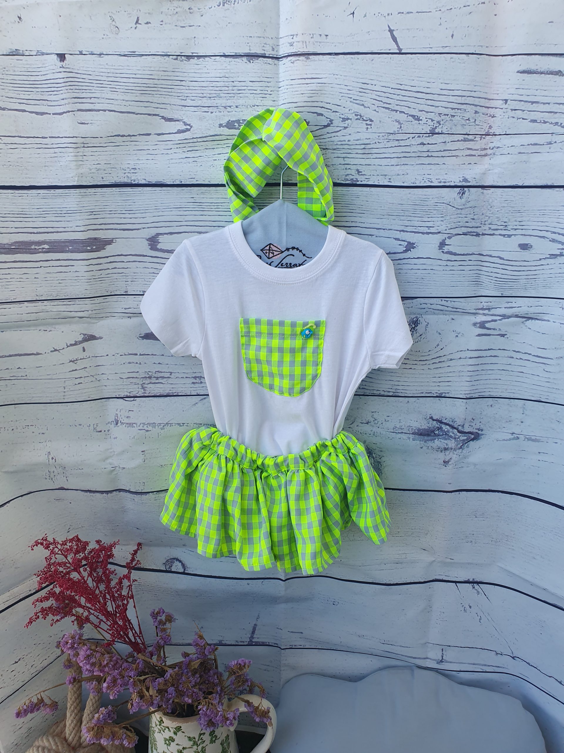 Falda rayas con flores flúor con camiseta a juego.
