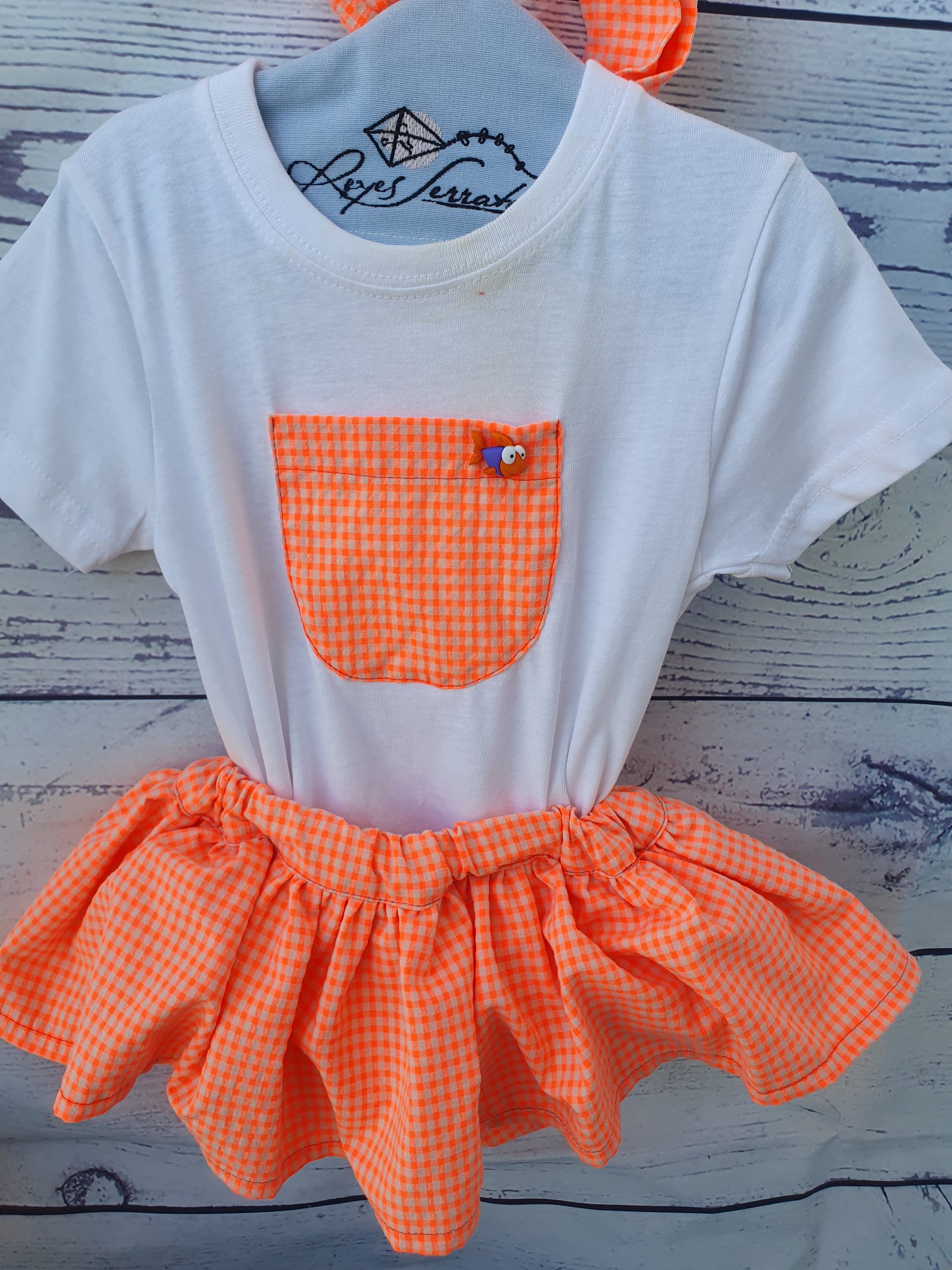 Falda cuadritos flúor naranja